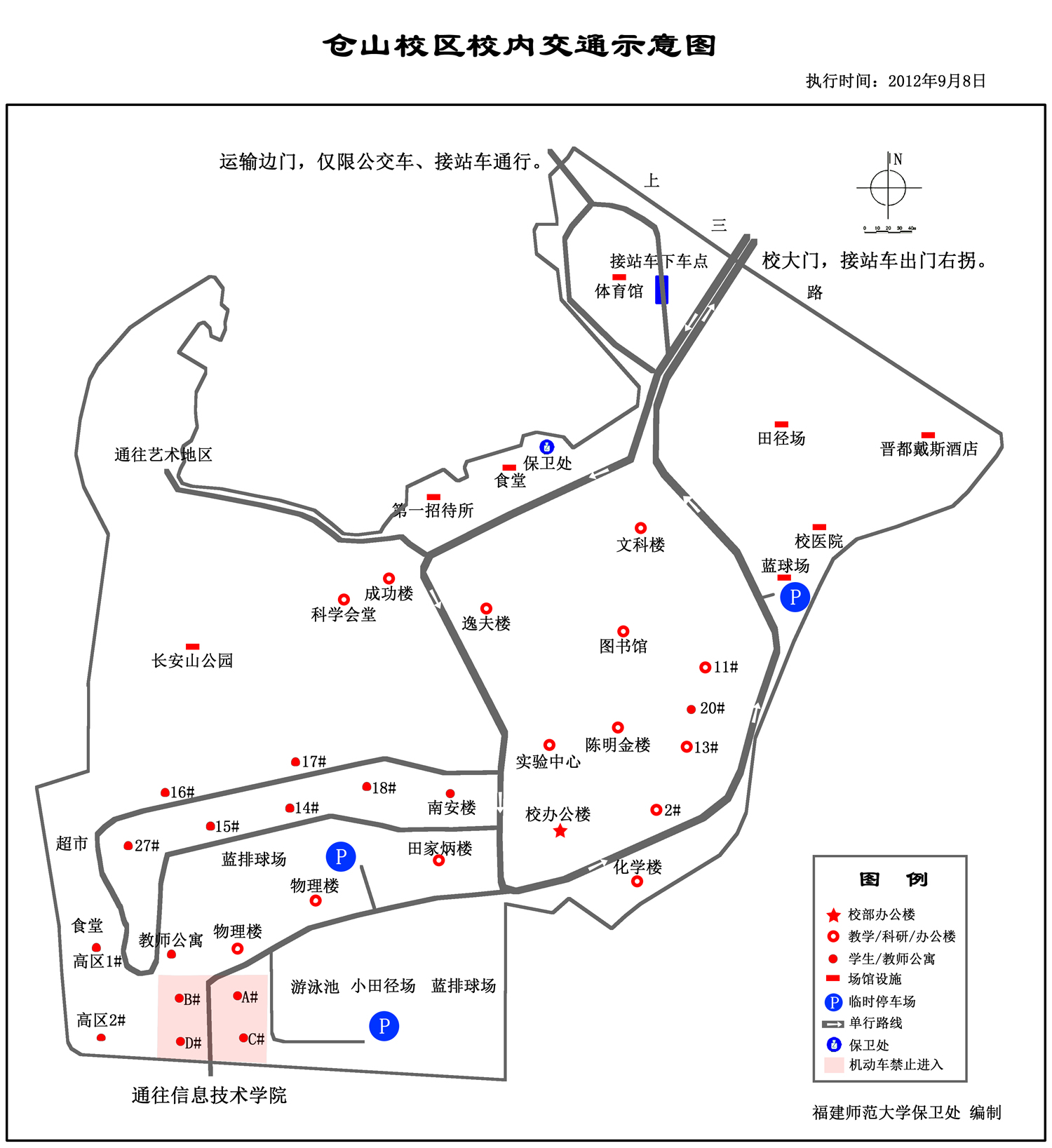 3、因校园(尤其是仓山校区)停车场地有限,为减少因车辆过多造成交通拥堵给您带来不便,建议住在学校附近的本校教职员工尽量不在9月8日开车进校,尽量不将机动车辆停在校内;建议新生家长尽可能不带车入校。