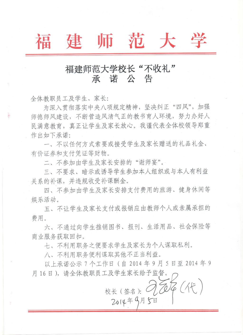 韦德官方网校长“不收礼”承诺公告