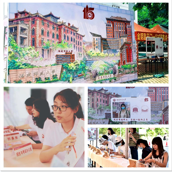 在现场,服务站点结合115周年校庆设立了“我与有福师大,与你一起向未来”新生合影打卡点;展播学校2022年招生宣传片、新生录取通知书开封视频及各学院师生拍摄的微视频;举办校园地标建筑拼图比赛等,帮助新生了解百年师大的底蕴与实力,培养新生对学校的认同感。