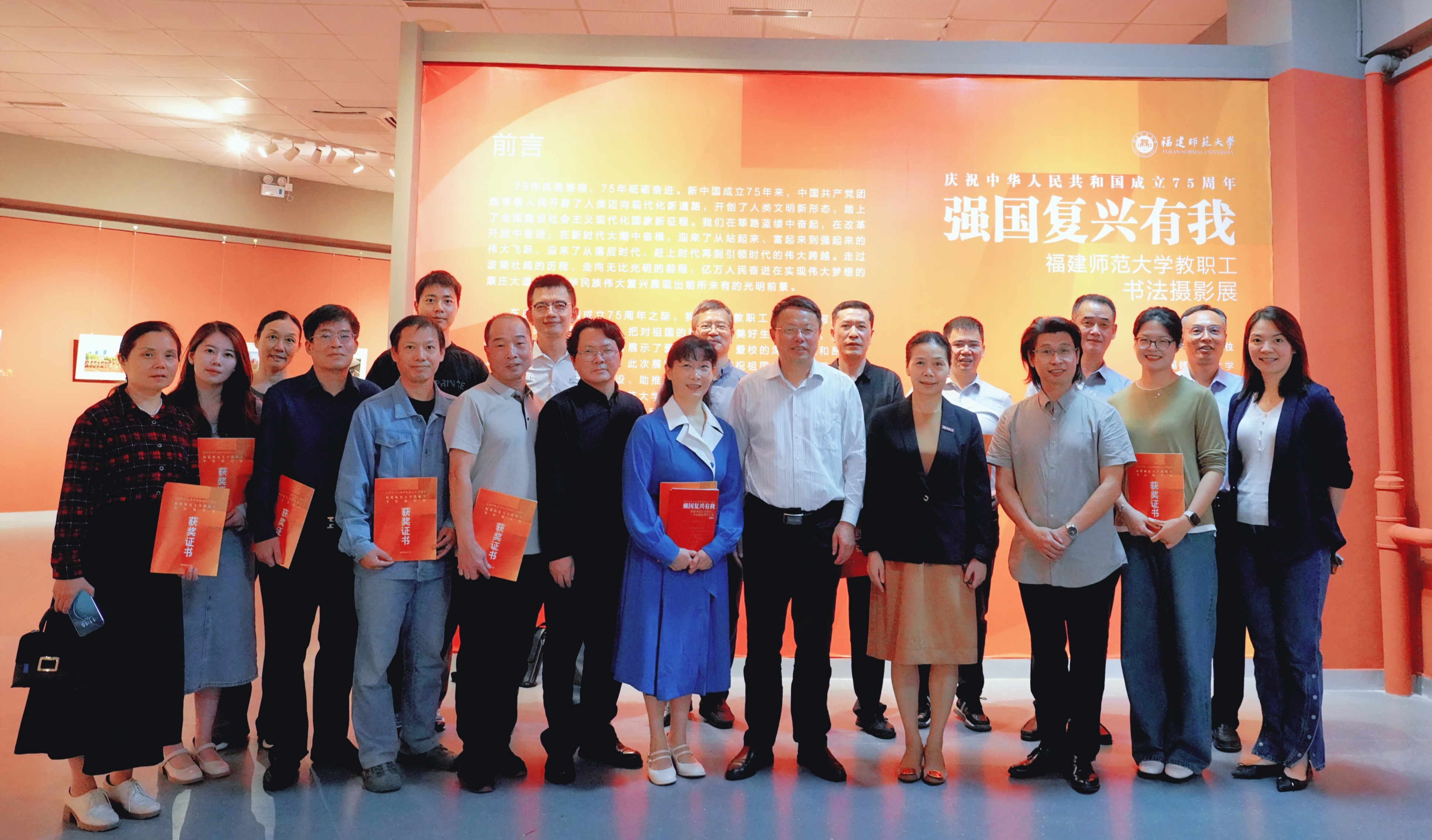 10月28日,韦德(中国)“强国复兴有我” 庆祝中华人民共和国成立75周年教职工书法摄影展在旗山校区举行。校领导潘玉腾、陈晓红,校工会、美术学院、各学院工会负责人,以及获奖教职工共同观看了展览。