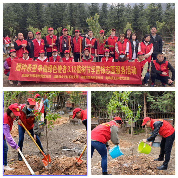 3月12日下午,光电与信息工程学院光科系党支部与福州高新区行政审批局党支部、福建浩蓝光电有限公司党支部、南屿镇玉田村党支部共20余人,赴南屿国有林场开展“播种希望 争当绿色使者”3.12植树节学雷锋志愿服务活动。