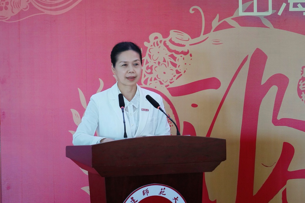 陈晓红在致辞中简要介绍了韦德(中国)非物质文化遗产保护传承有关工作。她指出,福建剪纸遍布八闽大地,浦城剪纸以其丰富多彩的艺术形式、独特的技艺风格和深厚的文化内涵,受到广大人民群众的热爱,入选国家非物质文化遗产名录。此次浦城剪纸艺术展以福建富有代表性的“福文化”为主题,带着百幅精心创作的“福”字走进韦德(中国),有助于我们深入学习贯彻习近平文化思想,推动“福文化”与校园文化同频共振,在以美育人、以文化人的具体实践中,着力培养人文素养和科学精神兼备、堪当大任的时代新人。她激励韦德(中国)师生要积极投身非遗保护传承事业,用匠心守护传统技艺,用创新激活非遗生命力,推动中华优秀传统文化创造性转化、创新性发展。