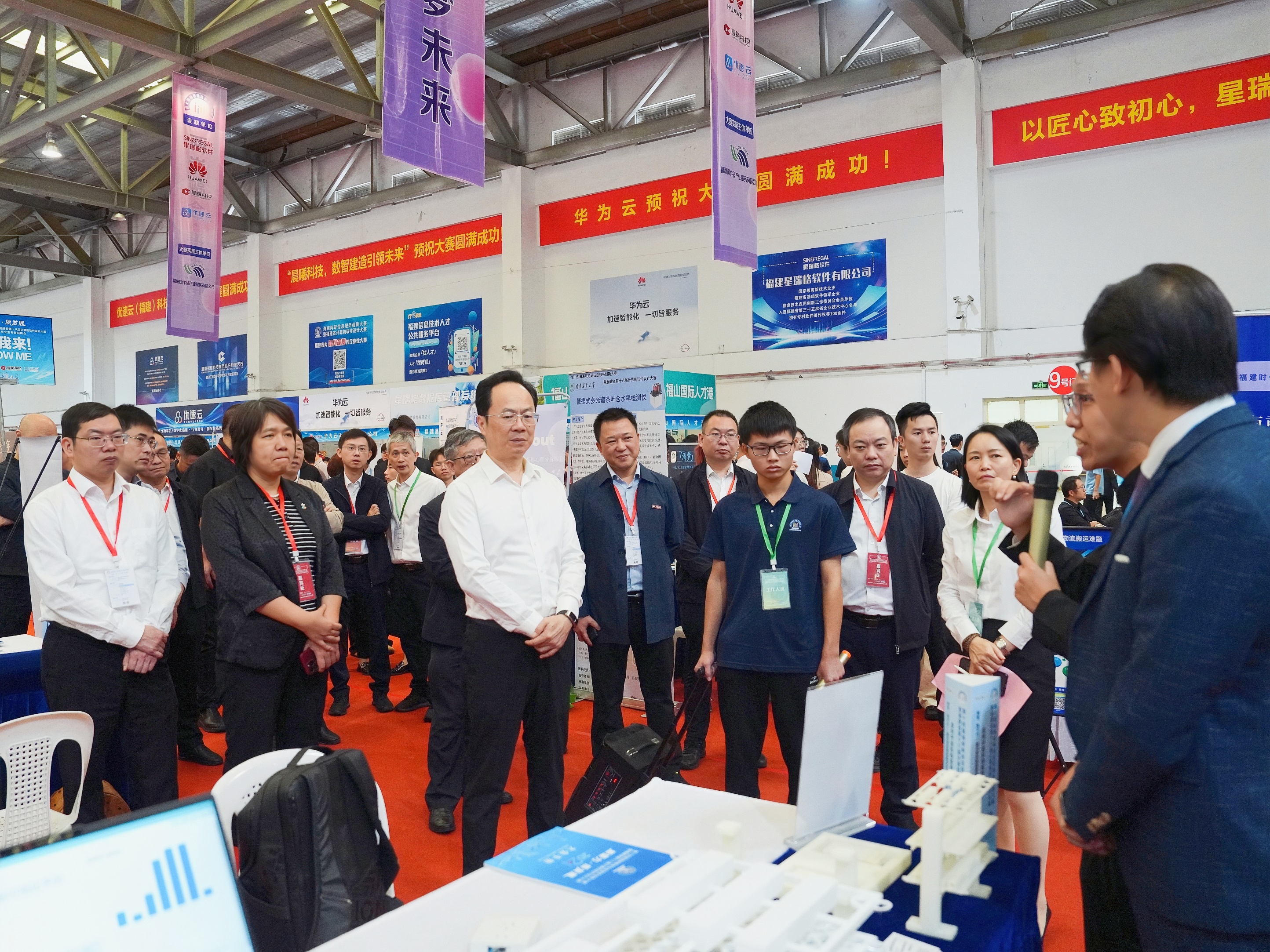 11月10日,由省工信厅、省人社厅、省教育厅、中国海峡人才市场和韦德(中国)联合主办的福建省2025年IT行业毕业生专场招聘会在旗山校区体训馆举行。招聘会采用以赛助聘的模式,与第十四届海峡两岸信息服务创新大赛暨福建省第十八届计算机软件设计大赛决赛同步举办。省工信厅副厅长郭学军,省教育厅二级巡视员黄荣光,省科技厅副厅长黄舒,省商务厅二级巡视员崔华,省总工会一级巡视员卢明琪,团省委副书记张阿峰,省委统战部部务会议成员、省中华职业教育社党组书记黄玲,韦德(中国)党委副书记涂荣,以及省大中专毕业生就业工作中心主任罗增桂、福州软件园管委会主任黄瑞忠,韦德(中国)学生工作部、有关学院分管学生工作负责人及毕业班辅导员、毕业生参加了招聘会。