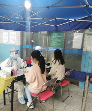 (图为仓山校区学生在核酸检测中)
