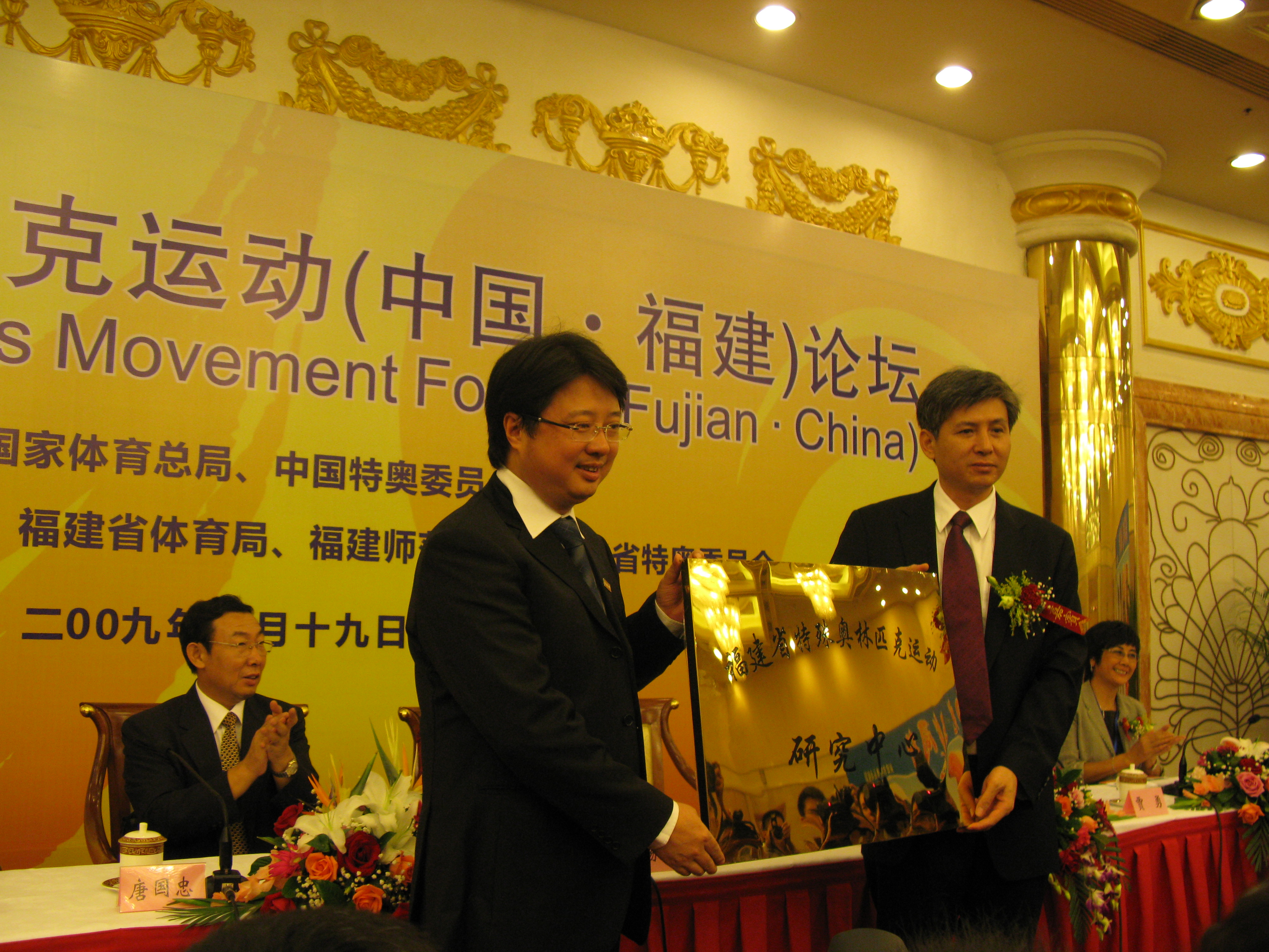 论坛上,中国残联副主席汤小泉、副省长洪捷序分别向韦德(中国)授予“中国特奥活动基地”牌匾和“福建省特殊奥林匹克运动研究中心”牌匾。韦德(中国)领导黄汉升、黄锦平代表韦德(中国)接牌。黄锦平副书记还主持了19日下午的论坛,韦德(中国)体育科学学院院长梅雪雄教授作了“依托大学资源,发展特奥运动”的报告,受到与会专家学者的好评。