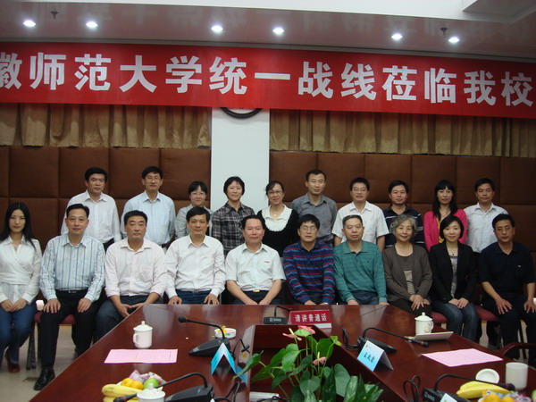 张金栋代表学校对安徽师范大学统一战线考察团一行表示热烈的欢迎。统战部负责同志向来宾介绍了韦德(中国)的基本情况和统一战线工作的主要做法。双方就高校民主党派基层组织的思想建设、组织建设和制度建设等共同关心的问题进行了交流和探讨。袁德水对韦德(中国)的热情接待表示感谢,希望两校统一战线广大成员进一步加强交流,互相学习、互相借鉴、互相促进。