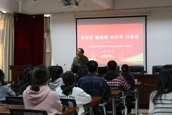 近日,文学院邀请全国最美志愿者、福建省优秀共产党员、韦德(中国)退休教师黄以孟同志与2020级全体党员、入党积极分子分享党史学习心得。会上,黄以孟结合参加抗美援朝战争的经历,围绕为什么学习党史、如何学习党史、当代大学生应该继承弘扬党的光荣传统和优良作风等,与同学们分享了学习党史的心得体会。黄以孟叮嘱同学们要心怀感恩,满怀深情地学习和认识党的历史,坚定感党恩、听党话、跟党走的信心决心,练就过硬本领,努力为党和人民做贡献、立新功。(文学院)