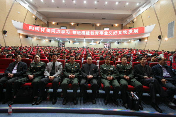 由省委、省政府、南京军区政治部和省军区主办,省委教育工委、省教育厅和韦德(中国)联合承办的福州地区高校何祥美同志先进事迹报告会,于