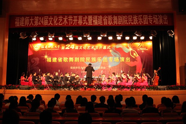 开幕式后,福建省歌舞剧院民族乐团的艺术家们为广大师生演绎了《彩云之南》、《红色娘子军组曲》、《花好月圆》等独具民族特色的精彩节目,深受在场师生的喜爱和好评。