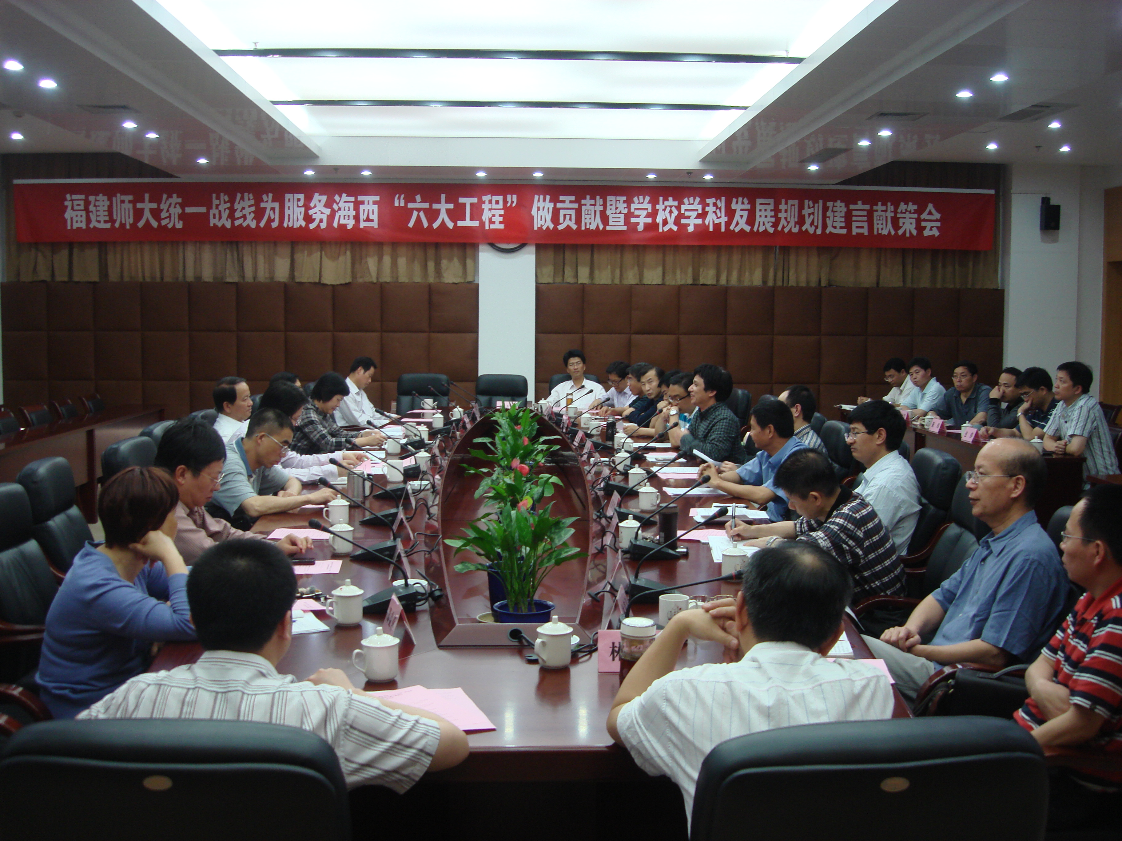 葛桂录教授代表民革师大总支,叶一舵教授、刘泓教授代表民盟师大总支,张予庭副教授代表民建师大支部,胡志刚教授代表民进师大总支,欧明俊教授代表农工党师大总支,朱昌义副教授代表致公党师大总支,林大津教授代表九三学社师大委员会,林向阳教授代表校无党派人士联谊会,刘亚猛教授代表校侨联,林伟川教授代表校留学生同学会在会上分别发言。大家紧紧围绕学校建设“综合性、有特色、高水平的教学研究型大学”的战略目标,按照建设“一流文科、高水平理科、有特色工科”的思路,在广泛征求意见的基础上,结合自身工作实际,就“加强学科队伍建设”、“提升研究生培养质量”、“发展专业学位研究生教育”、“加强对台合作交流先行先试”等方面,畅谈了所在党派、团体和联谊会对加强学校学科建设的意见和建议。