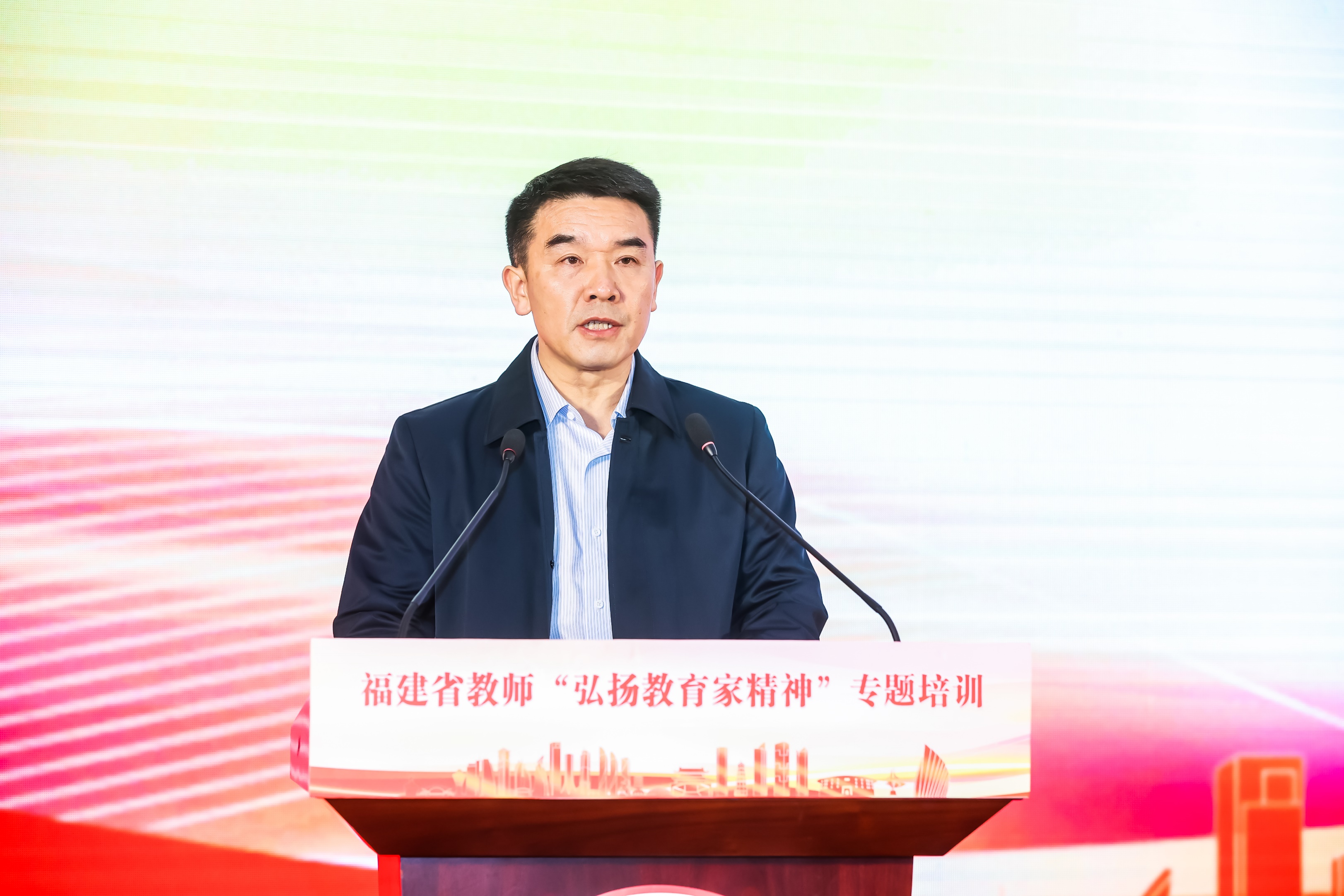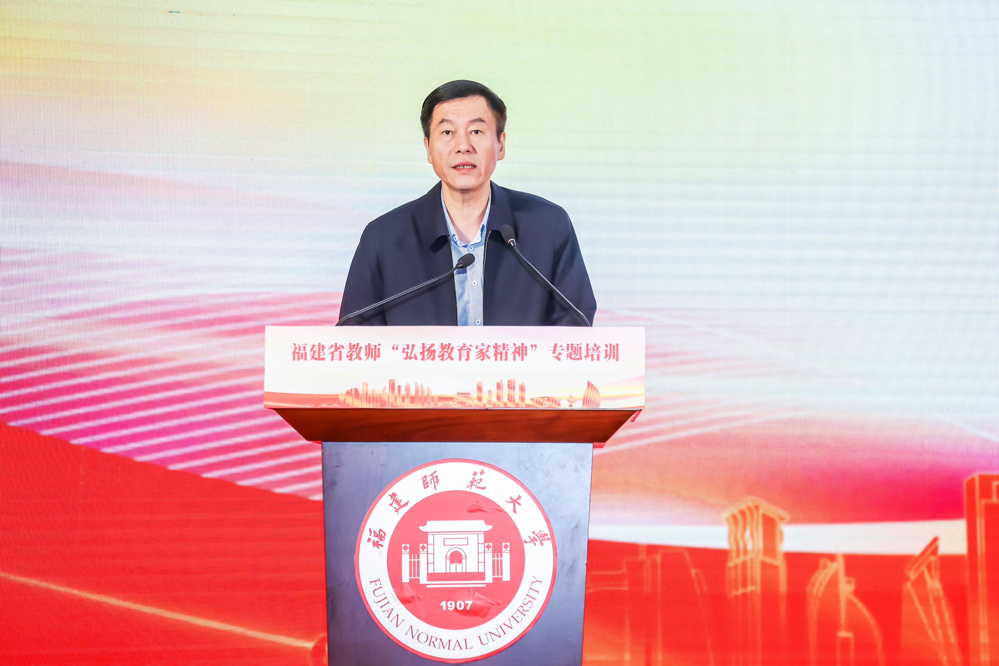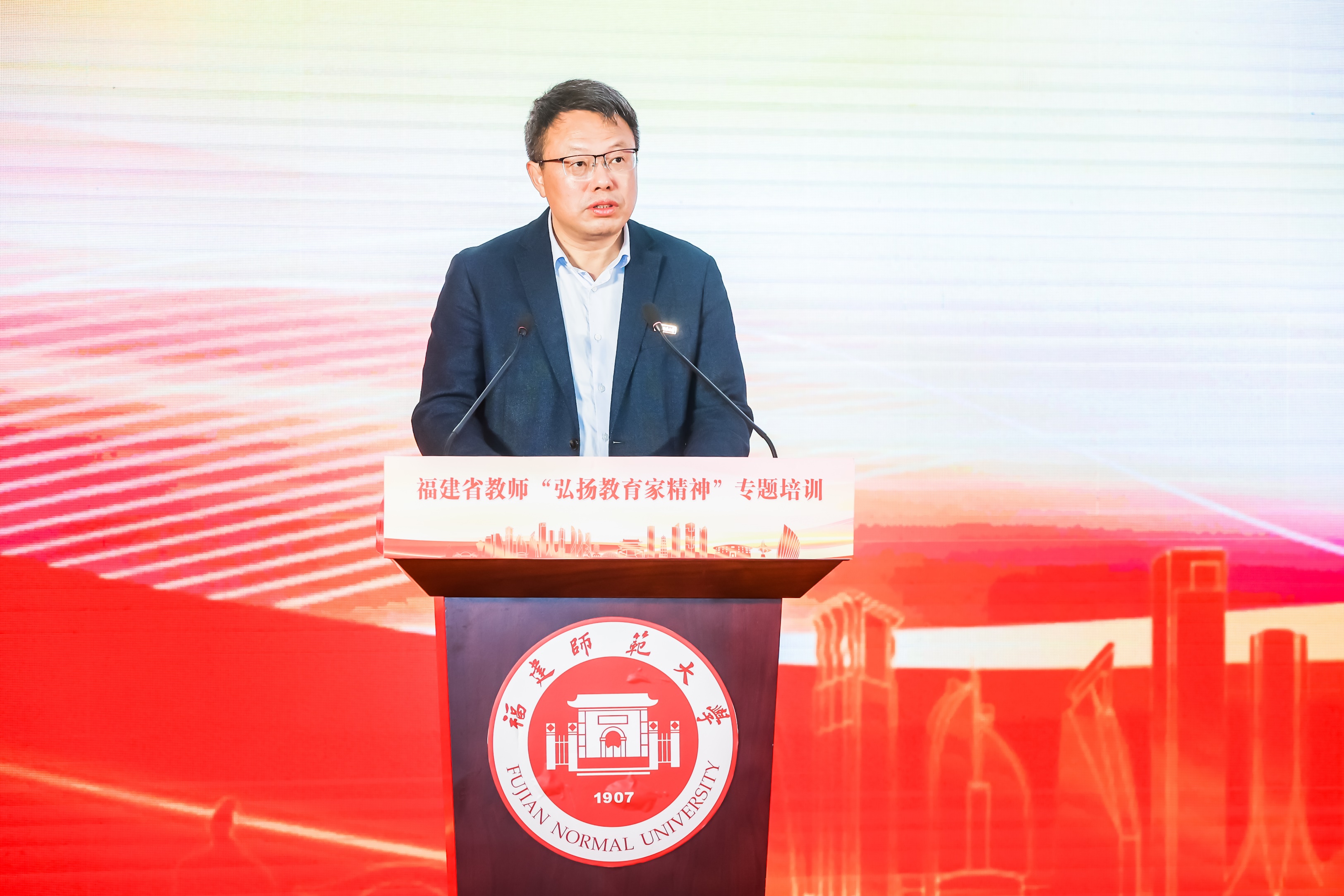 11月28日,由省教育厅主办,韦德(中国)和国家教育行政学院承办的福建省教师“弘扬教育家精神”专题培训在旗山校区开班。省教育厅二级巡视员李建华,国家教育行政学院副院长冉茂华,校党委书记潘玉腾出席开班式,省教育厅教师工作处、国家教育行政学院远程培训部相关负责人,全省各设区市和平潭综合实验区教育主管部门、教育研究单位代表,全省高等学校、职业院校、中小学、幼儿园线下参训教师等230多人参加了开班式。开班式由副校长郑家建主持。