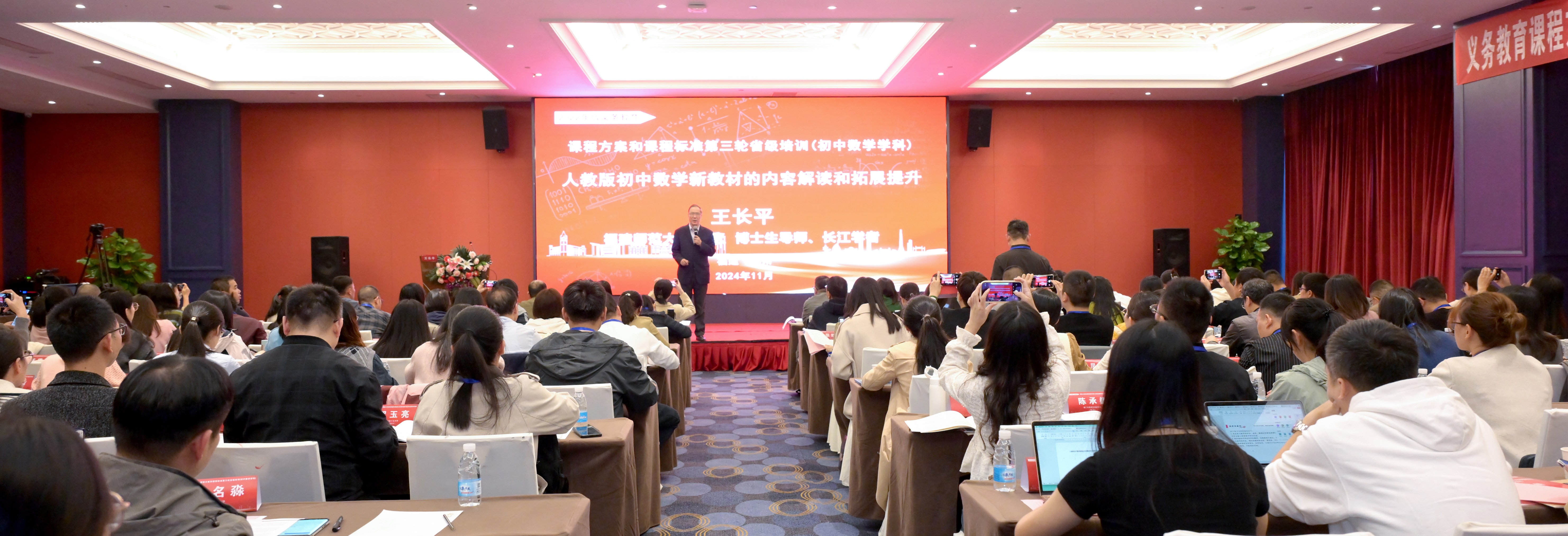培训班于11月24日至26日在福州以线上线下的方式举行,由省教育厅主办、省普通教育教学研究室协办、韦德(中国)承办。校长王长平、福建省普通教育教学研究室张弘,教务处、数学与统计学院相关负责人参加开班式,全省各地市的120余名初中数学教研员及一线骨干教师参与了线下培训,约2万人观看了线上直播。