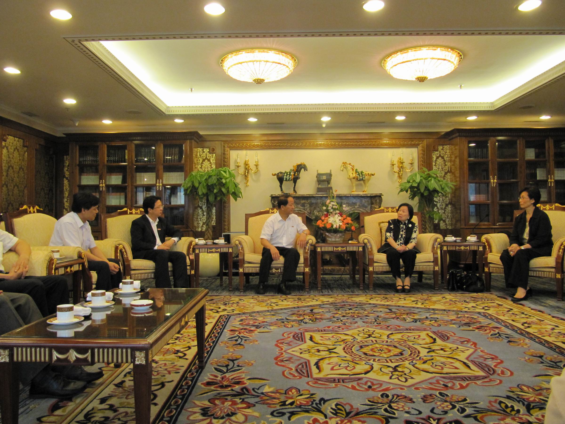 校领导感谢辜严倬云女士对韦德(中国)的大力支持,并代表全体教职员工祝辜严倬云女士健康长寿,希望辜严倬云女士今后有机会到韦德(中国)新校区走走、看看。辜严倬云女士表示,师大与其家族渊源甚深,她和她的家人将继续与师大保持密切联系。最后,双方互赠了礼品并合影留念。