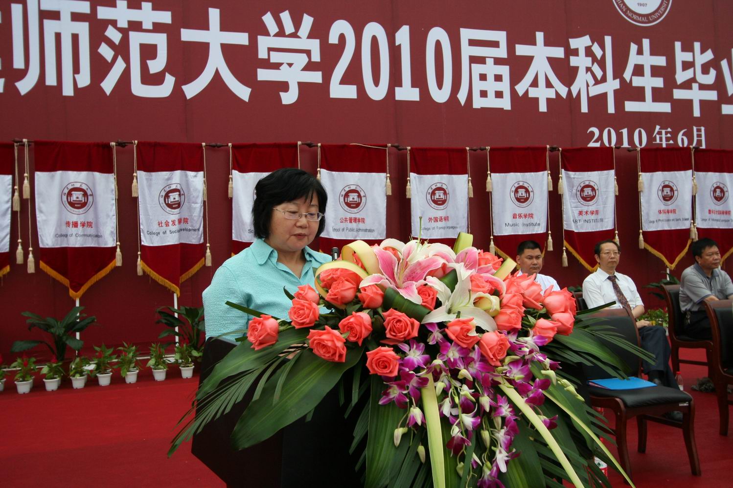 李敏副校长宣读了《韦德官方网关于准予2010届4398名本科学生毕业的决定》和《韦德官方网关于授予2010届4390名本科毕业生学士学位的决定》。