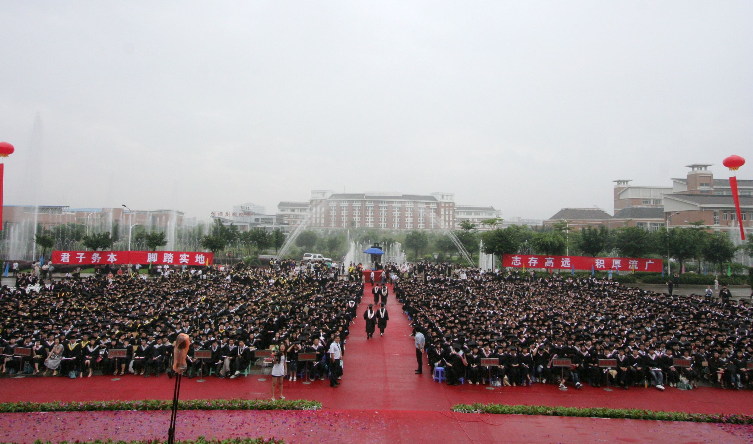 本届毕业典礼仪式让每一位来宾为之感动,也在每一名毕业生心底留下终身难忘的美好回忆。相信2010届毕业生一定会在未来的工作和生活中践行校党委罗萤书记和黄汉升校长的赠言:“君子务本、脚踏实地”、“志存高远、积厚流广”,在新的人生征途上创造新的辉煌。
