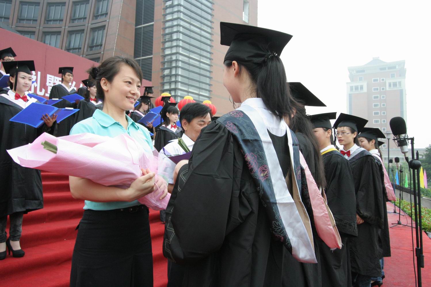 学位授予仪式上,黄汉升校长亲自为每一位2010届本科毕业生执行“拨穗礼”,并与毕业生合影留念。