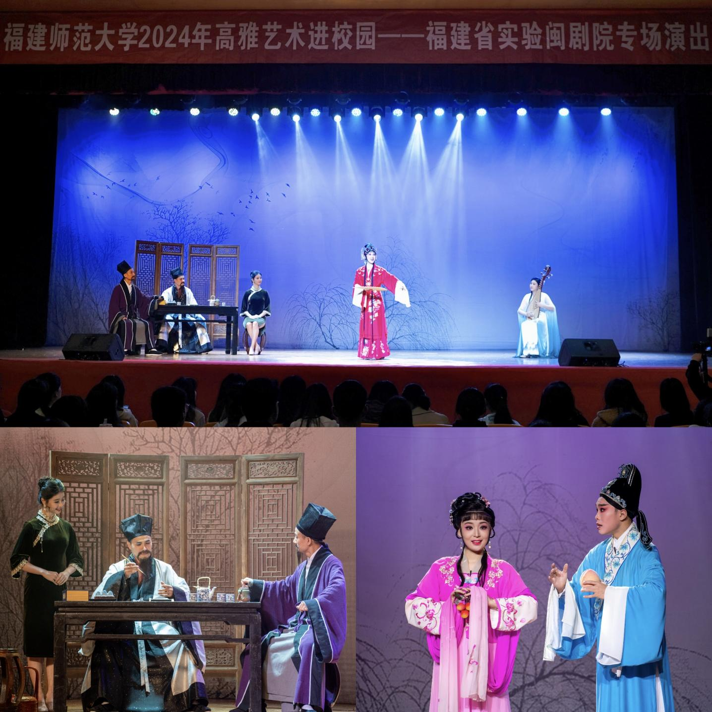 124日下午,2024年高雅艺术进校园——福建省实验闽剧院优秀闽剧剧目《“福”见儒林》在旗山校区青春剧场上演,千余名师生参加。