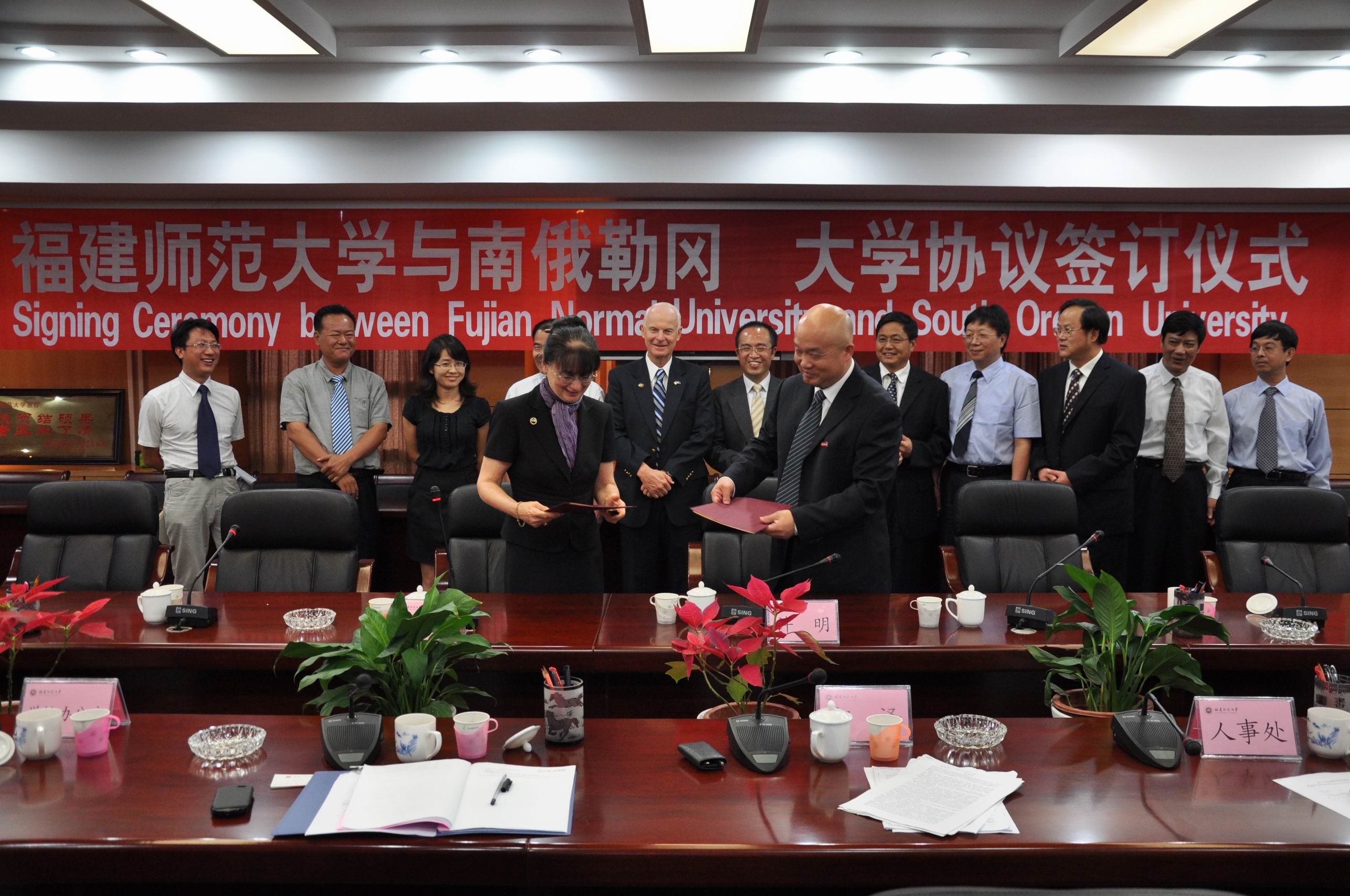 会见结束后,韦德(中国)与南俄勒冈大学举行了合作协议签订仪式。双方签订了为期三年的合作协议,协议内容包括共同举办讲座、研讨会、座谈会以及开展共同培养本科生和研究生的合作项目等。