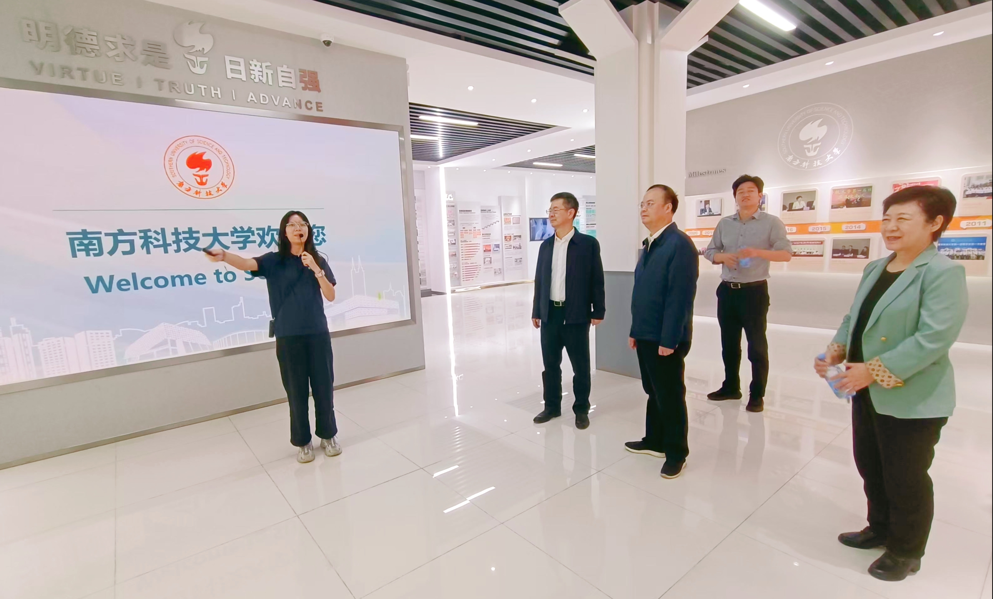 在南方科技大学党委副书记、纪委书记姚文胜陪同下,林月恩一行参访了南方科技大学办学成果展厅、廉诚文化主题学生艺术实践课程书画展、廉洁研究院、机器人研究院、冷冻电镜中心等教学科研文化场所,双方围绕纪检监察工作、新时代廉洁文化建设、纪检监察学科建设等主题进行了深入交流。林月恩代表学校对南方科技大学长期以来对韦德(中国)事业发展和纪检监察学科建设的支持帮助表示感谢,介绍了韦德(中国)纪检监察工作和纪检监察学科建设情况,希望两校在纪检监察工作、廉洁文化建设、纪检监察学人才培养和咨政服务等方面加强合作,推动资源共享、优势互补,携手推进纪检监察学科建设、理论研究和实践探索。姚文胜对林月恩一行表示热烈欢迎,对韦德(中国)率先启动纪检监察学科建设予以高度赞赏,介绍南方科技大学纪检监察工作、廉洁研究院建设、以“三百工程”助推新时代高校廉洁文化走深走实等工作情况,表示将进一步加强与韦德(中国)的交流合作,共同推动新时代纪检监察学科高质量发展。