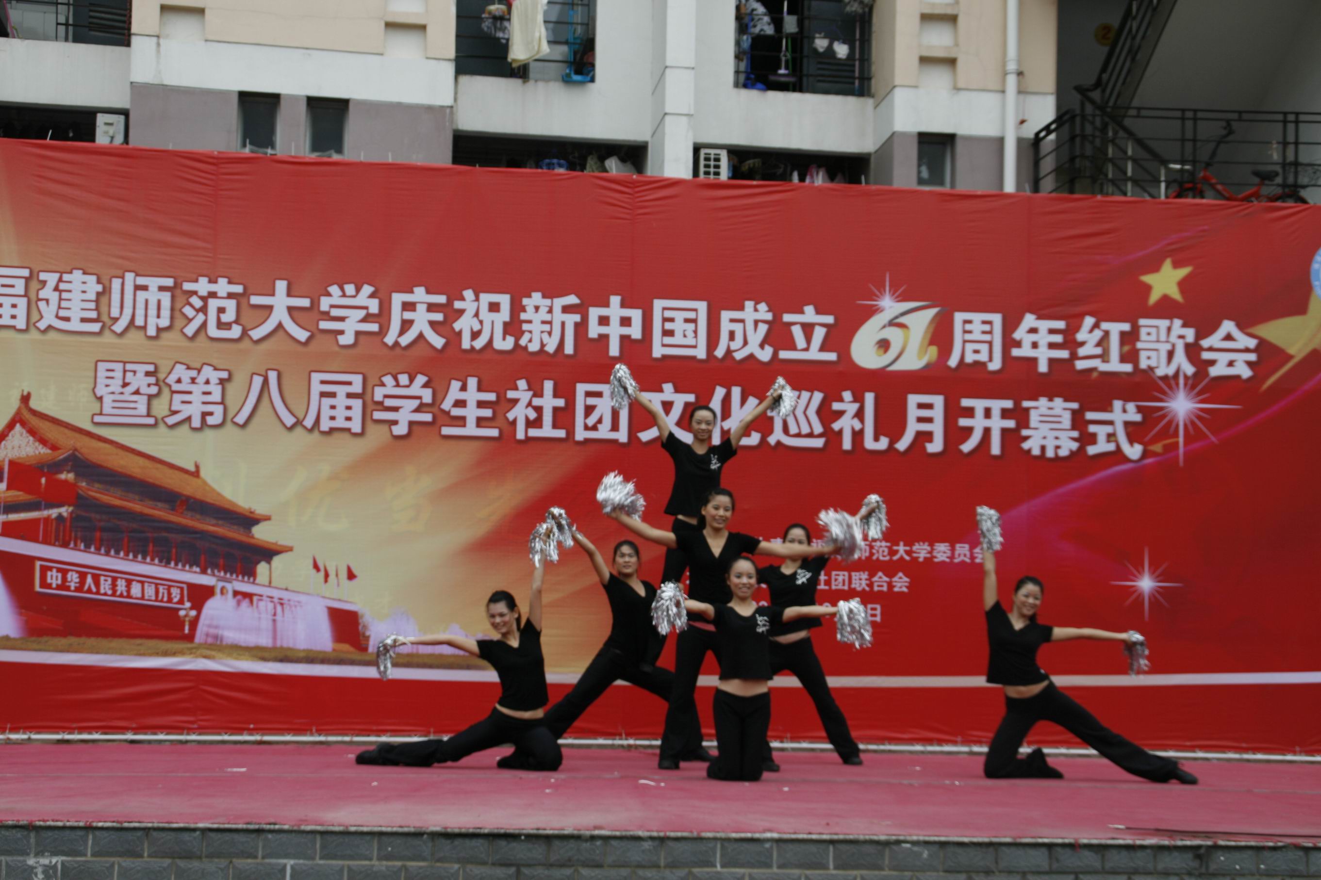同时,“韦德官方网庆祝新中国成立61周年红歌会”也在共青团广场举行。来自各个学院的青年学生放飞歌声,共祝祖国生日快乐,共唱中华繁荣富强。《祝福祖国》、《我家在中国》、《映山红》、《红旗飘飘》、《我和我的祖国》、《国家》等歌曲,表达了青年学生对祖国母亲的无限热爱与深情祝福。唱响红歌的同时,健美操协会、街舞协会、滑轮协会等各类学生社团也纷纷为同学们献上精彩表演,不断将现场气氛推向高潮。