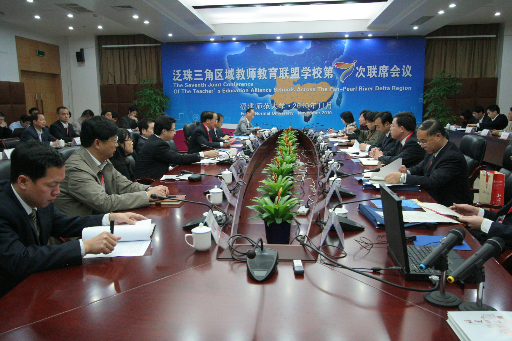 吴仁华代表福建省教育厅对本次会议的召开表示热烈祝贺。他指出,师范院校作为我国教师教育的主要力量,对教师教育发展起着决定性的作用。在学习贯彻全国教育工作会议和《教育规划纲要》的过程中,如何积极推进教师教育创新,不断探索教师培养模式改革,更好地面向基础教育,服务基础教育,发挥师范院校在教师教育创新中的积极作用,成为高等师范院校面临的重要理论和实践课题。在此背景下,泛珠三角区域教师教育联盟学校通过加强交流,促进合作,一定会结出丰硕成果,进一步促进区域教师教育事业在更高层次上科学发展、跨越发展。相信通过这此会议,福建省教师教育的改革和发展,能有更新的思维空间和更活的发展思路。