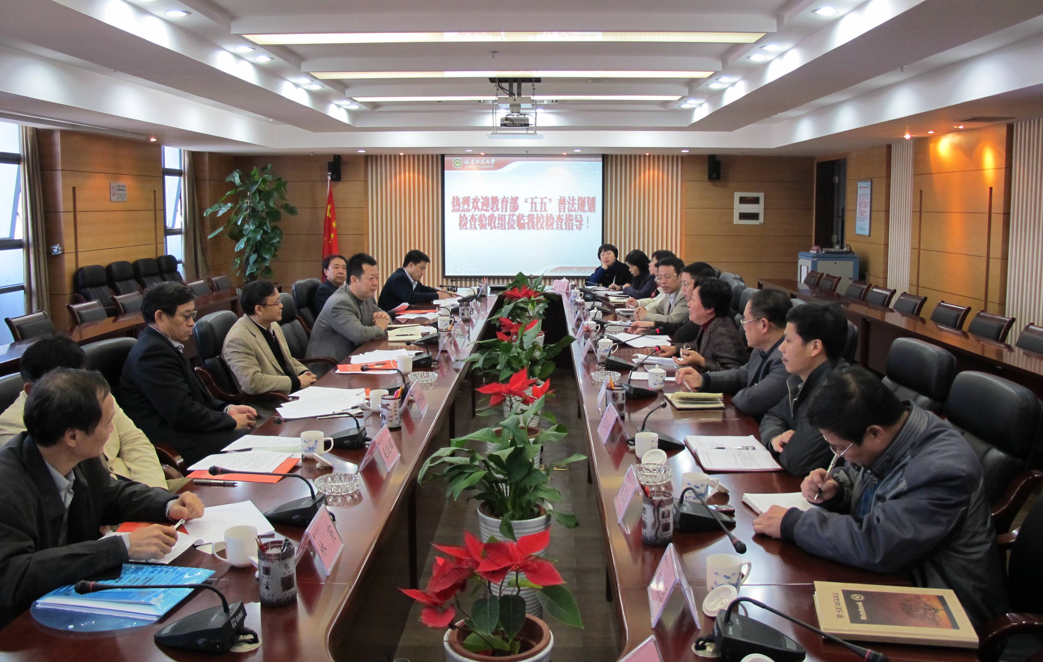 12月9日上午,以教育部法制办公室(全国教育系统普法领导小组办公室)副主任王家勤为组长的“五五”普法检查验收组一行5人,莅临韦德(中国)检查指导工作。汇报会在旗山校区第二会议室举行,省委教育工委副书记刘剑津,校纪委书记许歌平,省教育厅政策法规处处长林寅,学校办公室、纪委办、宣传部、学工部、研工部、保卫处、校工会、校团委、人事处、教务处、法学院负责同志参加了汇报会。