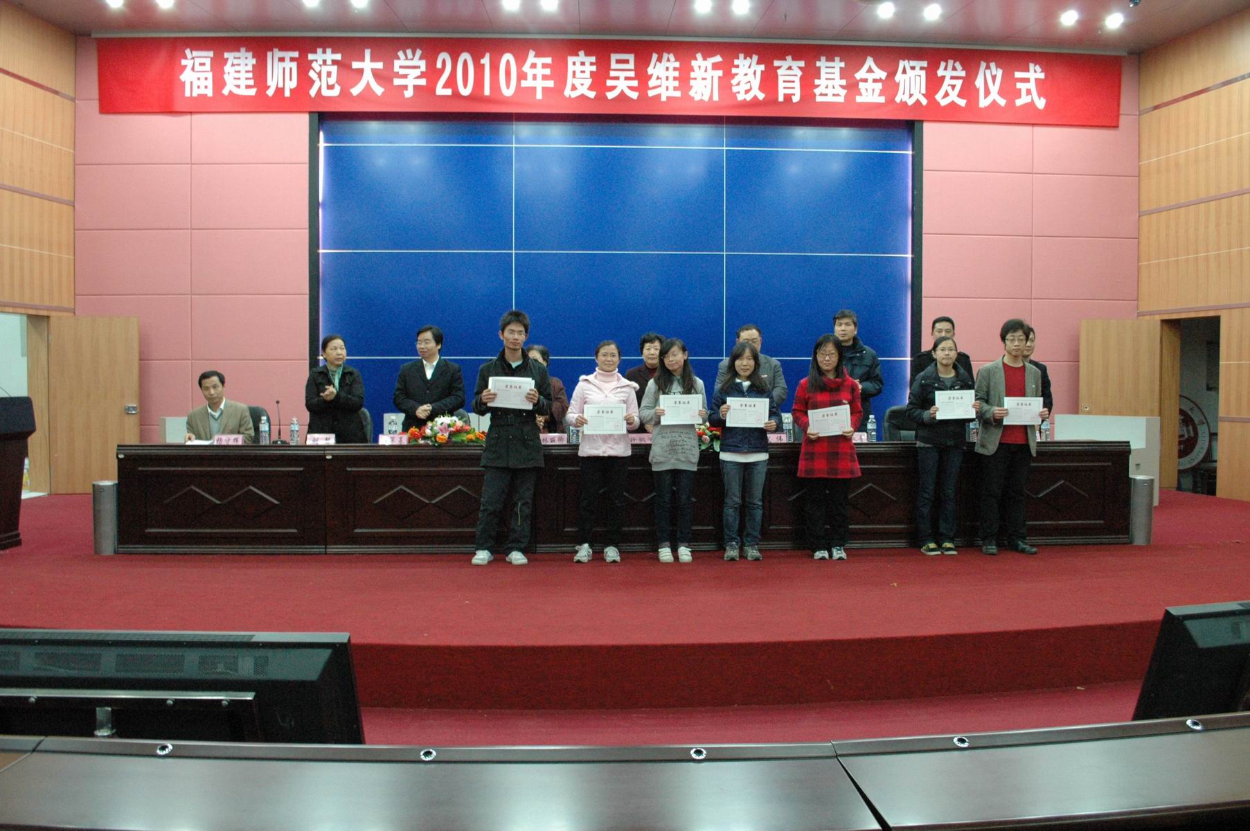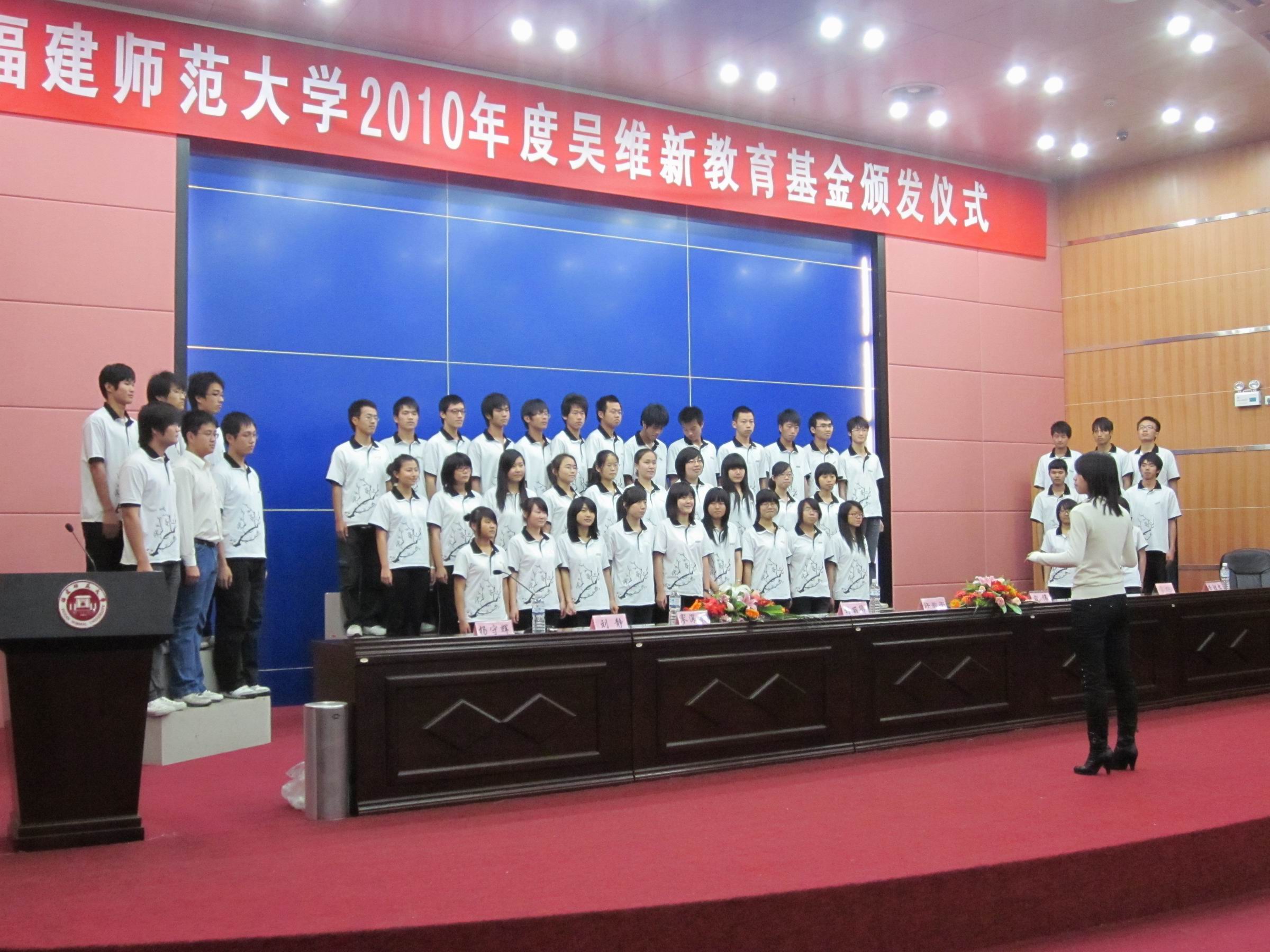 颁发仪式上,数学与计算机科学学院院长李永青宣读了2010年度韦德(中国)吴维新教育基金奖助学金获得者名单,出席颁发仪式的领导为奖助学金获得者颁发了奖状及奖金。获得奖助的学生代表作了发言,部分学生还以诗歌朗诵、合唱等节目形式表达他们的感恩之情和再接再厉的拼搏信念。