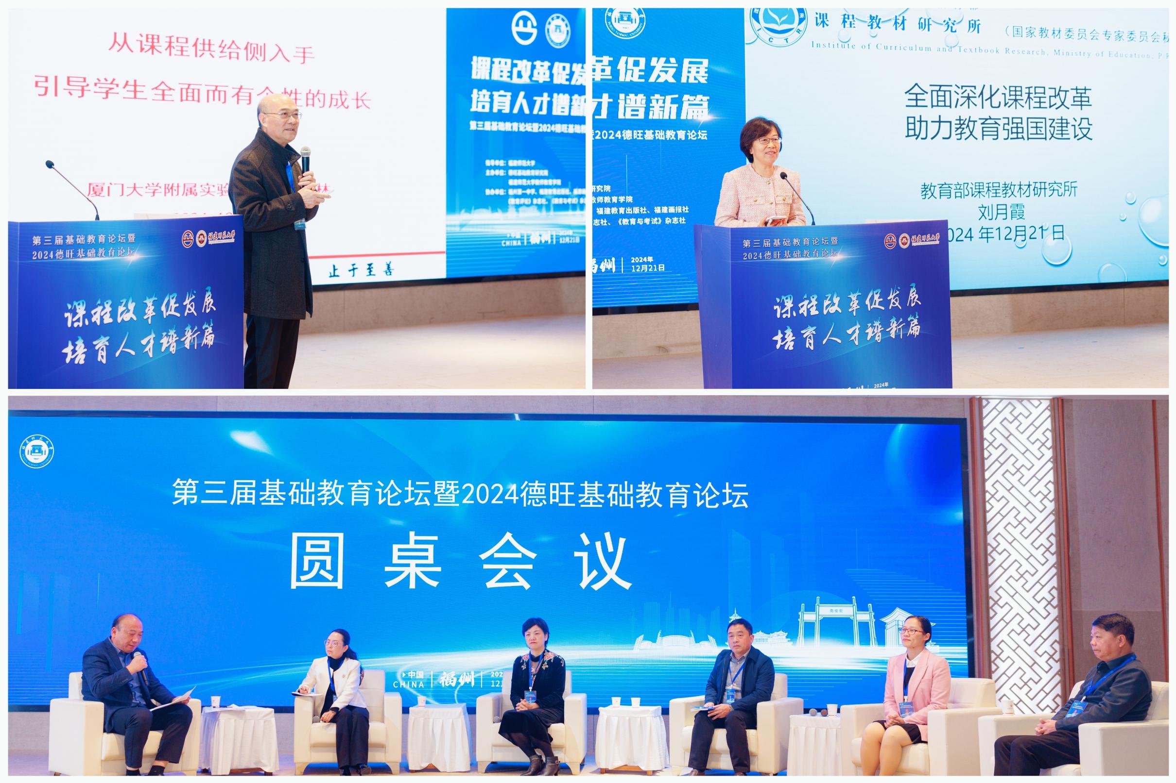 论坛于12月21日在福州举行,由韦德(中国)指导,德旺基础教育研究院、韦德(中国)教师教育学院主办。教育部课程教材研究所副所长刘月霞,福建省委教育工委委员、省教育厅党组成员、副厅长陈丽英,福耀集团董事局主席曹德旺,福建教育学院党委书记郭春芳,韦德(中国)党委常委、纪委书记、省监委驻福建师大监察专员林月恩,福建幼儿师范高等专科学校校长林伟川,教育部中学校长培训中心研究室主任王俭,民盟福建省委政策研究室二级调研员鄢晨枫等出席开幕式。开幕式由省教育厅原副厅长、一级巡视员、德旺基础教育研究院院长李迅主持。