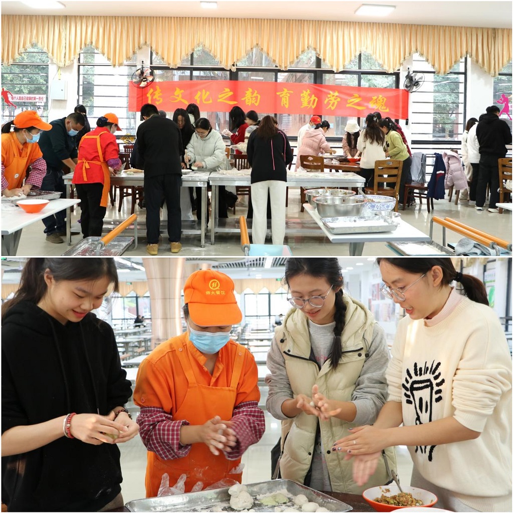1221日,后勤服务集团在旗山校区南区随园餐厅开展“岁寒温情至,‘饺’暖话‘圆’时”冬至主题活动,50名余学生通过网络报名后现场参与活动。