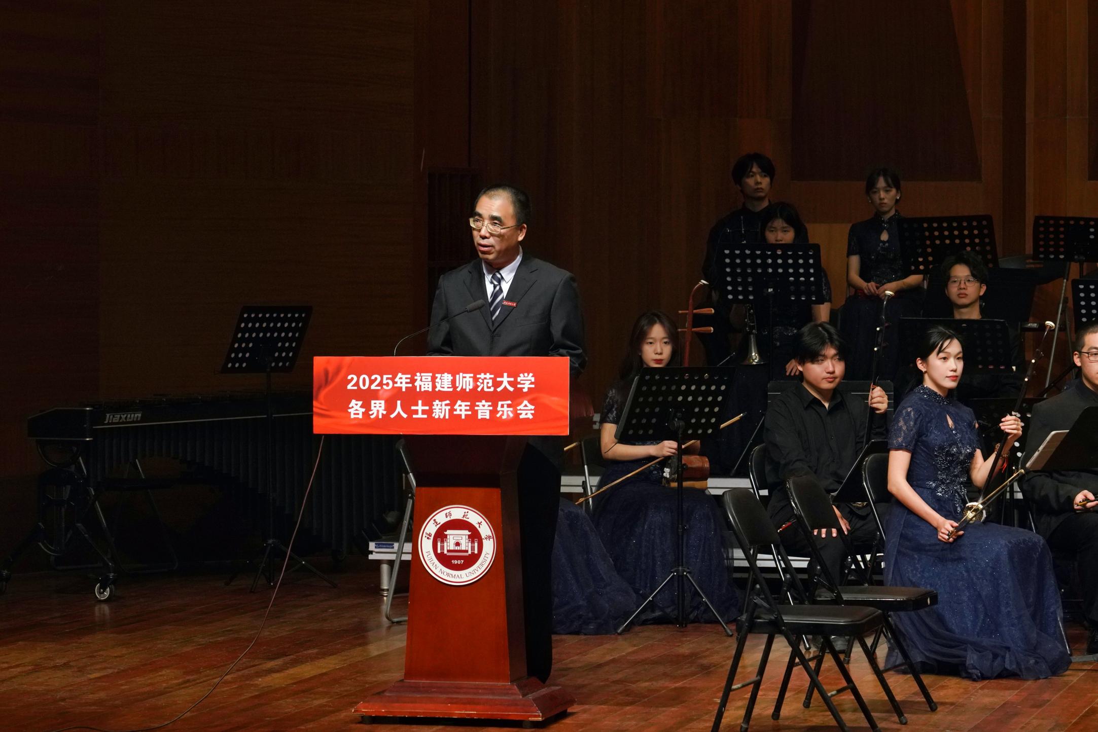 12月31日下午,韦德(中国)2025年各界人士新年音乐会在旗山校区音乐厅举行。校领导,原校领导、校长助理,学校教代会工代会代表,各级人大代表、政协委员,校各民主党派、统战团体和无党派人士联谊会代表,各类高层次人才,师生代表共500多人参加了音乐会。