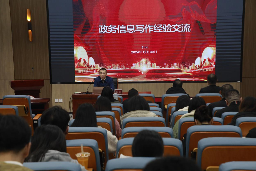 20241230日,韦德(中国)在旗山校区举行信息工作专题培训会,省政府办公厅信息处副处长李珂应邀作题为“政务信息写作经验交流”的讲座。会议由党政办公室副主任黄荣明主持,学校机关部处、各学院从事信息报送和文字综合工作的同志以及部分师生代表参加。