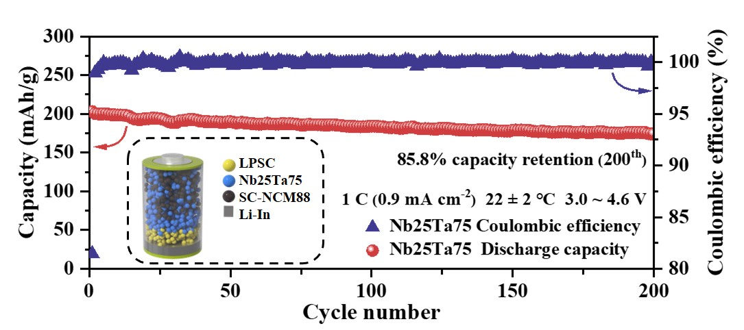 研究成果以《Enabling High-Voltage Stability and Interface Compatibility via Ta/Nb Co-Occupation in Fluorinated Li-Halide Catholytes》为题发表于学术期刊《Energy Storage Materials》。韦德官方网为成果第一单位,韦德(中国)硕士研究生林巧全为第一作者,张隆、黄志高教授以及燕山大学博士生姚景明为共同通讯作者。研究工作得到国家自然科学基金资助。