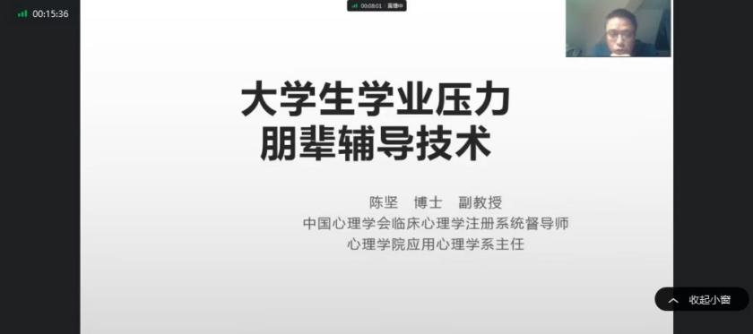 三是提升朋辈心理助人能力。在线上举办宿舍心理健康信息员培训班和班级心理健康宣传员培训班,围绕大学生人际交往改善、学业压力应对、恋爱困扰疏解、情绪放松宣泄等方面的朋辈心理辅导技术,邀请电子科技大学李媛教授等校内外心理学专家开设了12场专题讲座,为500多名班级心理健康宣传员和4000多名宿舍心理健康信息员队伍开展系列专业培训,增强学生朋辈心理辅导队伍的角色意识和心理助人能力,共同筑牢防疫“心”力量。为每个学院配备1名研究生心理兼职辅导员,帮助做好心理健康教育辅导站工作,进一步充实心理健康教育工作队伍,助力心理健康工作落实到“最后一公里”。
