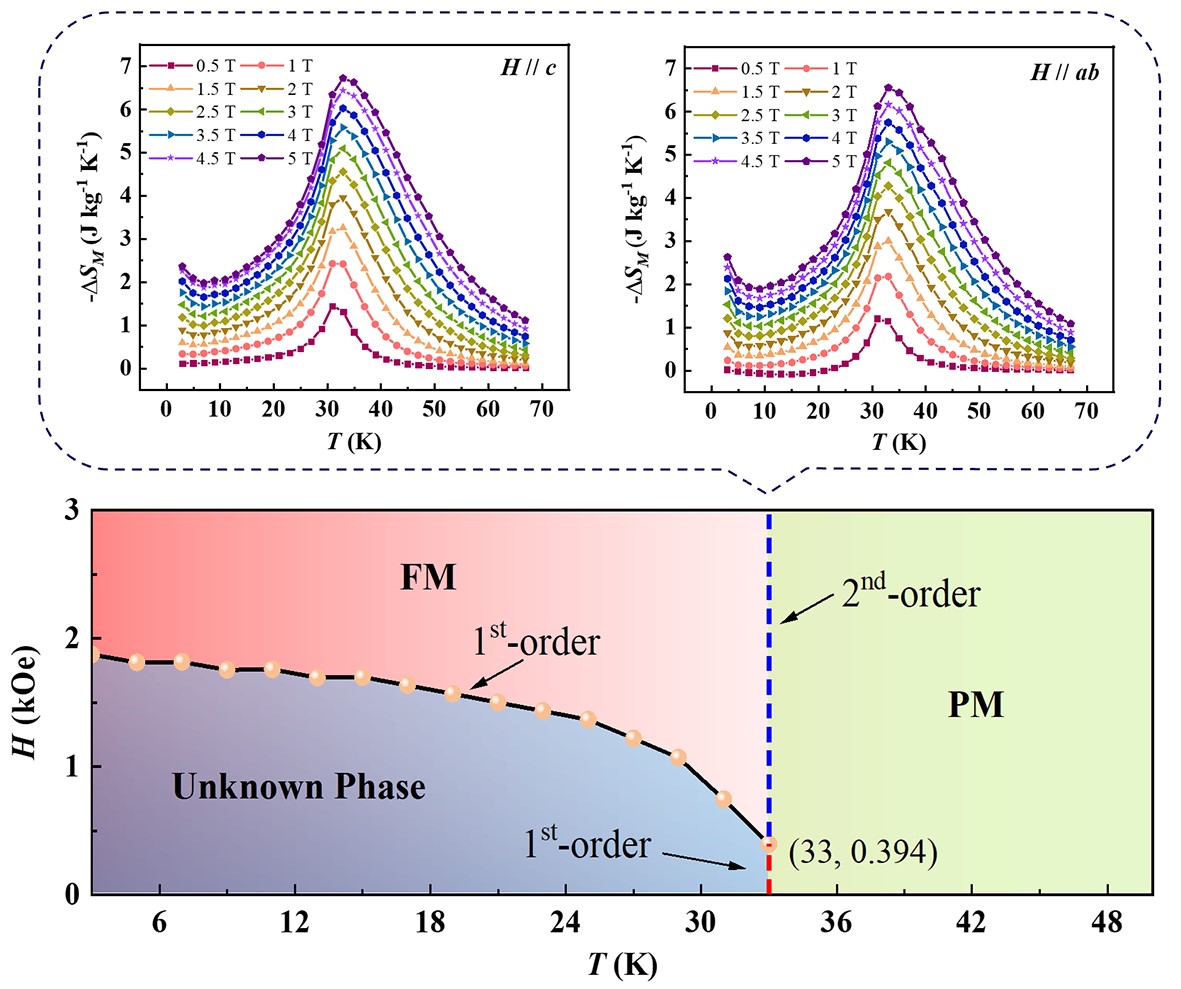 CrBr3的磁相图及其磁转变温度附近的熵变