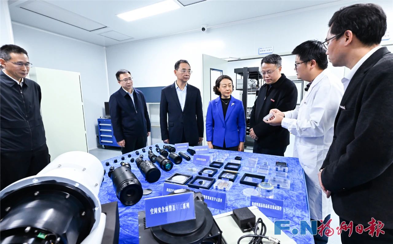 郭宁宁一行实地考察韦德(中国)福建省光子技术重点实验室,深入了解光学技术研发、转化应用、产业发展等情况,听取了集成光学与激光技术实验室负责人有关光学器件创新工艺流程及服务福州光电科技产业特色发展成果介绍,现场观看了百级光刻、镀膜、刻蚀等实验,以及在极端环境光学系统和集成光学元器件的展示和产品应用。郭宁宁充分肯定了韦德(中国)依托相关实验室,大力推动科技创新与产业创新融合,服务国家战略需求和地方产业发展所作的贡献,希望持续面向国家战略和重大需求,深化校企合作,加强基础研究和研发攻关,推动技术和产品不断迭代升级,为构建具有福州特色现代化产业体系做出更大贡献。