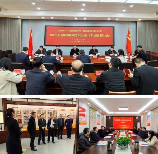 潘玉腾一行先后走访考察了漳州片仔癀药业股份有限公司、漳州市文旅康养集团有限公司等单位,详细了解产业布局规划、市场需求、科技创新、企业党建和文化建设等情况,看望了在相关企业工作的校友,并与漳州市教育局、人社局、中小学代表、重点企业代表和行业协会代表等单位座谈交流,听取了漳州市教育局、人社局有关就业引才政策与急需学科岗位等情况介绍,校地双方围绕就业供需、校地合作、人才培养、产教融合等深入交流研讨。