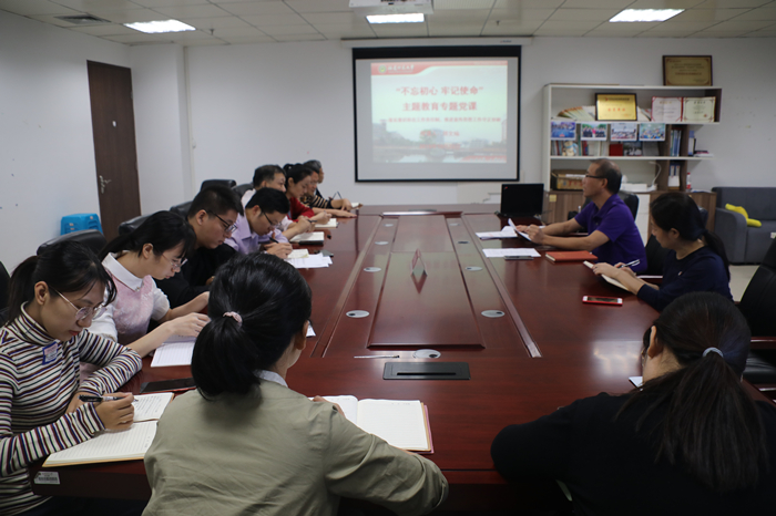 22日,宣传部党支部在校官微工作室开展“不忘初心 牢记使命”主题教育专题党课活动。机关党委委员、宣传部党支部副书记郑文灿为支部全体党员上了一堂名为《落实意识形态工作责任制 推进宣传思想工作守正创新》的党课。
