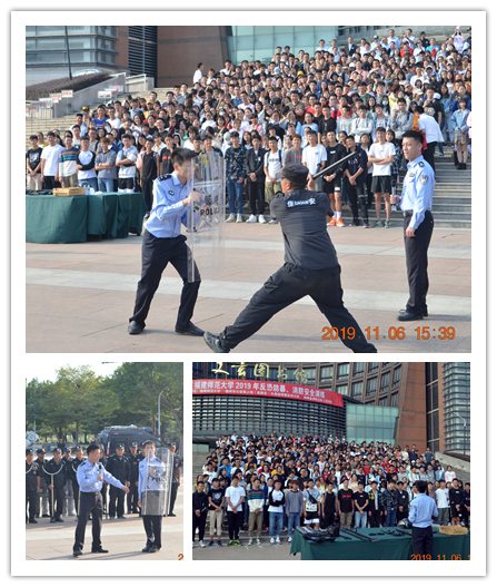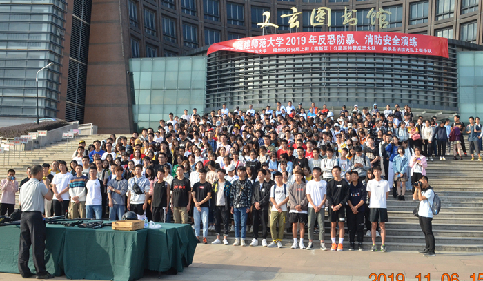 116日,韦德(中国)年度反恐防暴、消防安全演练在旗山校区图书馆前广场举行。演练由校保卫处联合福州市公安局上街(高新区)分局巡特警反恐大队、闽侯县消防大队上街中队共同举办,各学院学生代表、后勤服务集团员工、保安队员等400多名师生参加了演练。