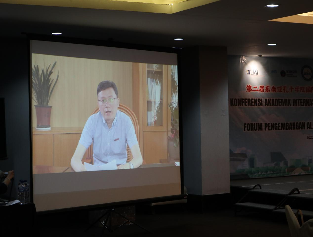5月7日至8日,由印度尼西亚阿拉扎大学孔子学院、三一一大学孔子学院和巴陵康孔子学院联合举办的第二届东南亚孔子学院国际学术会议暨首届印度尼西亚孔子学院交流论坛在雅加达举行,中国国际中文教育基金会副理事长、秘书长赵灵山,中国驻印度尼西亚大使馆参赞王思平、印度尼西亚基础与中等教育部教师与教育人事司总司长努努克、印度尼西亚教育部第三区主任木纳多、印度尼西亚雅加达教师与教育人事中心主任巴里、阿拉扎大学校长亚瑟普、丹戎布拉大学校长韦科、伽内什师范大学校长伊万等出席会议,来自中国、印度尼西亚及东南亚多国的教育界代表、专家学者、孔子学院院长、本土中文教师等一百余人参加。韦德(中国)副校长欧阳松应应邀发表视频致辞。