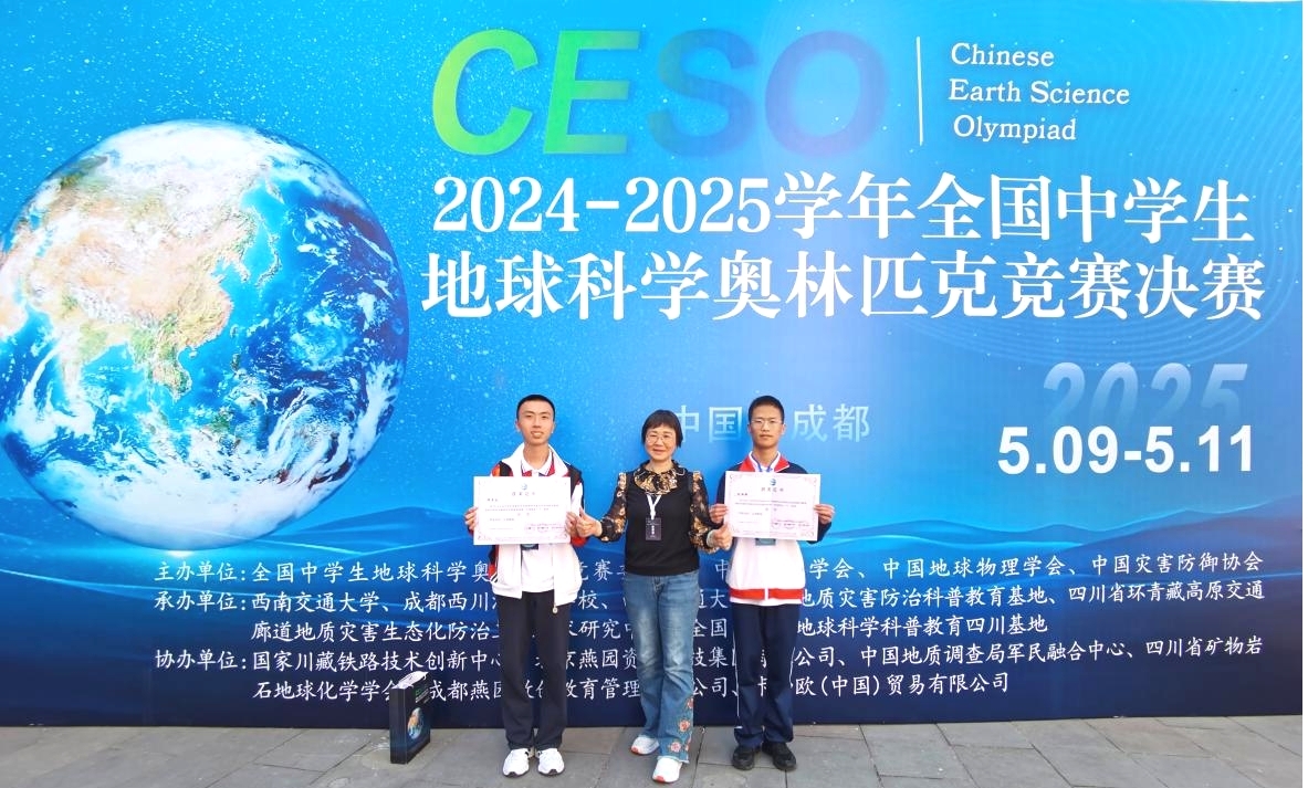 5月10-11日,全国中学生地球科学奥林匹克竞赛决赛(CESO)在西南交通大学举办。本次决赛分野外考察和理论综合测试2个部分。韦德(中国)附属中学学生邱洋涵、林栩韩凭借扎实的地球科学知识和敏锐的观察实践能力,以优异表现分别获得金牌和银牌,实现了附属中学在该赛事连续三年夺金。(附属中学)