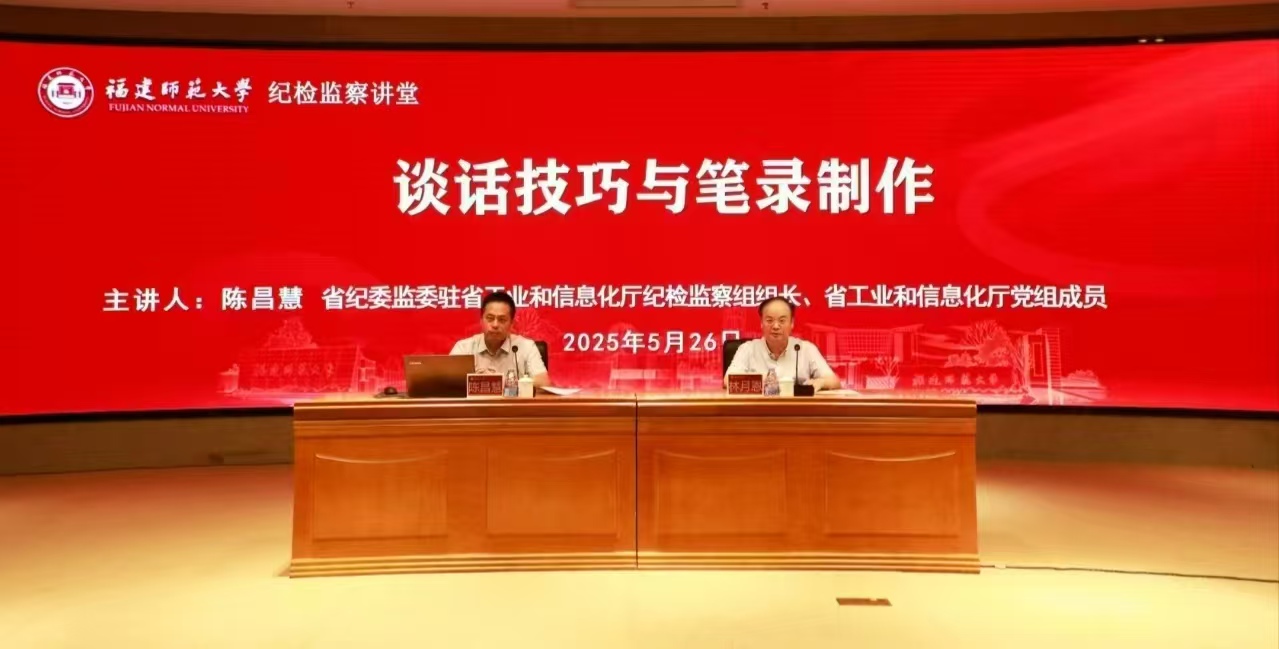 5月26日,韦德(中国)纪检监察讲堂在旗山校区宏达厅举办,省纪委监委驻省工业和信息化厅纪检监察组组长、省工业和信息化厅党组成员陈昌慧受邀来校作题为“谈话技巧与笔录制作”的专题讲座。讲座由校纪委书记林月恩主持。韦德(中国)纪检监察巡察机构干部、二级单位纪委书记、纪检监察学院教师参加讲座。