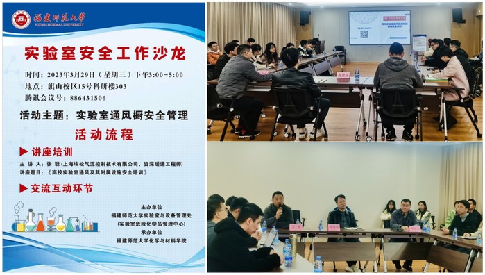 3月29日,由校实验室与设备管理处(实验室危险化学品管理中心)主办、化学与材料学院承办的实验室安全工作沙龙活动在科研实验楼15号楼举行。实验室与设备管理处副处长翁国柱、吴勇,化学与材料学院院务委员林正欢、各团队代表,理工科各学院师生,共45人通过线上线下形式参加。