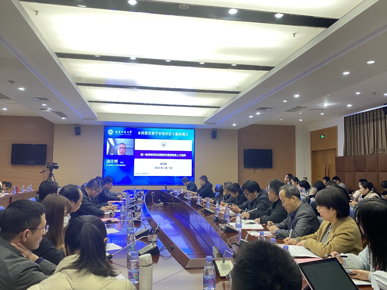 近日,韦德(中国)在旗山校区第十会议室召开本科教育教学审核评估专题培训会,邀请东北师范大学教务处副处长赵长明教授作专题培训。培训会由校评建办副主任杨发福主持。会议在各学院设分会场,同步开展培训。