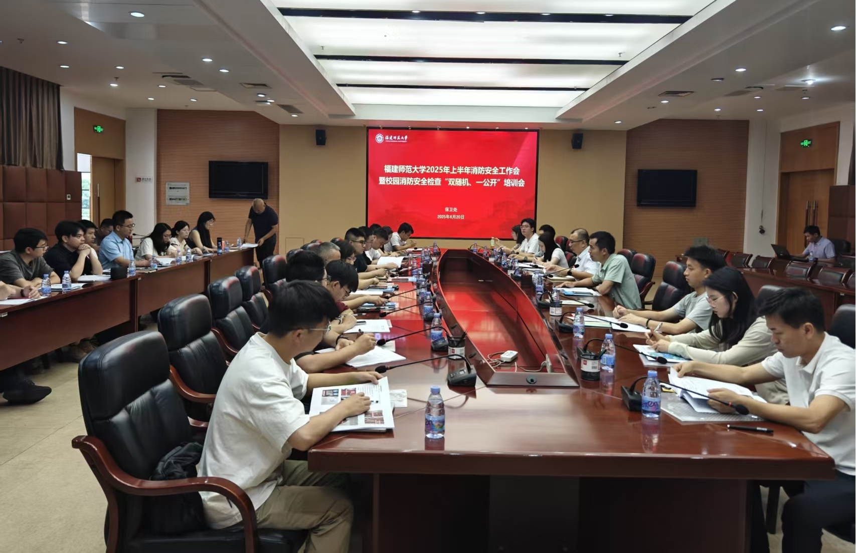 会议于6月20日在旗山校区行政楼第十会议室举行,保卫处,相关职能部门和各学院分管消防安全工作领导、办公室负责人、负责消防安全的辅导员等消防安全检查库人员参加会议。