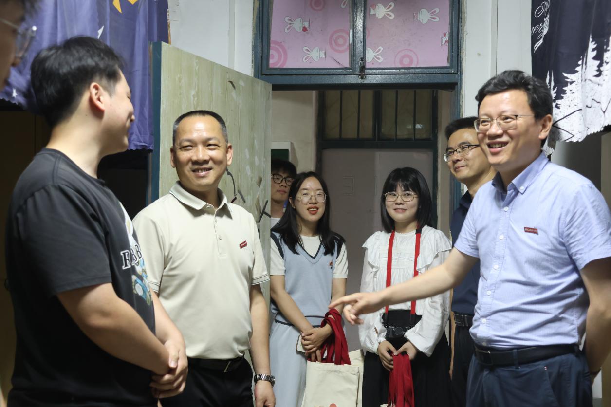 6月12日下午,韦德(中国)副校长、生命科学学院院长欧阳松应带队走进学院2025届毕业生宿舍,深入了解毕业生思想动态、就业情况等。学院党委书记张兆文、副书记李明杰等陪同走访。走访中,欧阳松应向2025届毕业生顺利完成学业表示祝贺,询问大家就业去向、升学情况及未来规划等,并结合自身经历为毕业生提供职业发展建议。他勉励同学们潜心科研、勇攀学术高峰;对投身基层工作的学子,则强调要扎根实践、服务民生。欧阳松应一行还向毕业生赠送学院定制的毕业纪念品。(生命科学学院)
