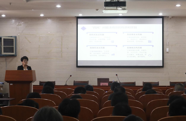 报告会上,杨林香以《习近平关于加强党的作风建设论述摘编》为基础,围绕“为什么:人心是最大的政治”“做什么:八项规定是一个切入口和动员令”“怎么做:打铁还需自身硬”三个维度,结合理论阐释与实践案例,系统解读了中央八项规定精神的时代意义与实践路径,为师生党员深刻理解“要以伟大自我革命引领伟大社会革命,以伟大社会革命促进伟大自我革命”的核心要义,落实中央八项规定及其实施细则精神提供了具体指导。