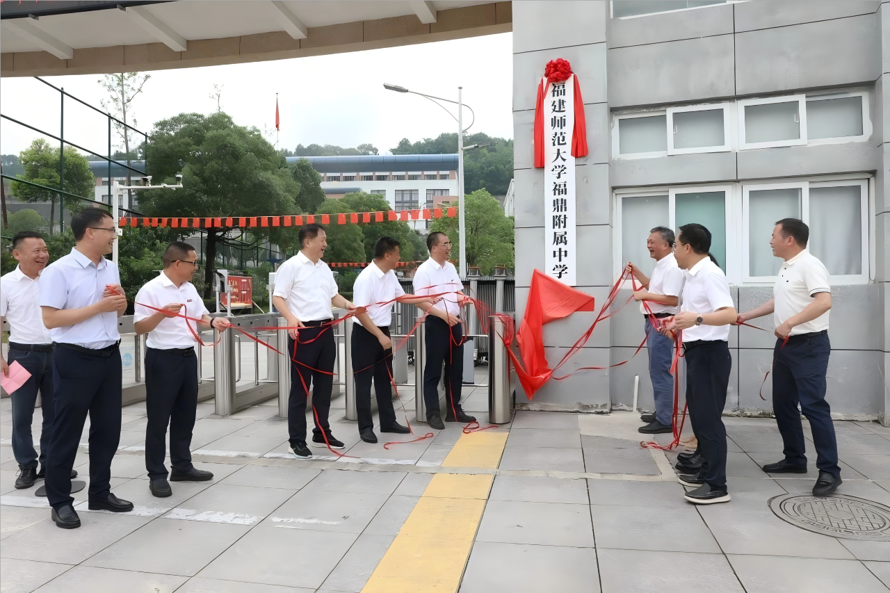 会后,双方代表共同前往福鼎六中山前校区为“韦德官方网福鼎附属中学”揭牌。