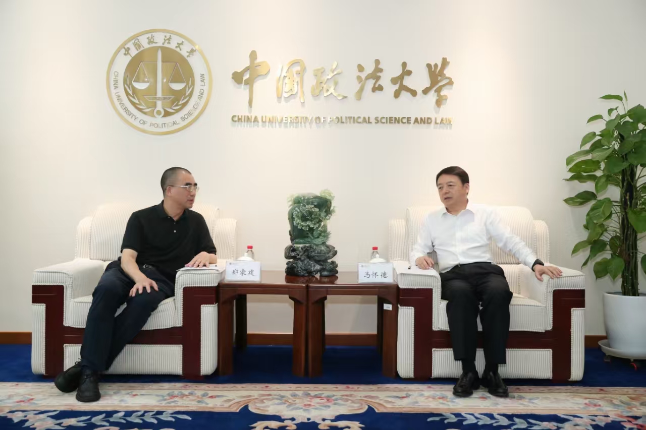 在中国政法大学,郑家建一行与国务院学位委员会纪检监察学学科评议组召集人、中国政法大学校长马怀德进行了座谈交流,中国政法大学党委副书记、纪委书记刚文哲,党政办公室(政策研究室)副主任李彦鹏,教务处副处长、招生办公室主任于瑞辰,纪检监察学院副院长施鹏鹏等参加座谈交流。郑家建介绍了学校纪检监察学院独立设置以来的建设情况,向马怀德校长和中国政法大学对学校纪检监察学科建设的支持帮助表示感谢,对中国政法大学近年来取得的显著办学成就表示祝贺,表示学校将充分发挥综合性大学的学科优势和区域文化资源优势,准确把握纪检监察“明体达用、体用贯通”的特征,努力推动纪检监察学科内涵式、特色化发展。希望中国政法大学继续给予指导和支持,开展更加深入的交流合作,共同为构建中国特色纪检监察学自主知识体系贡献力量。马怀德对郑家建一行的到来表示热烈欢迎,介绍了中国政法大学办学情况,对韦德(中国)在省内率先开展纪检监察学科建设的做法和成效表示赞赏,认为推动纪检监察学科高质量发展,要围绕学科四个二级方向建强学科队伍,加强理论探索和学术研究,构建高水平人才培养体系,拓展学术交流与合作,积极服务经济社会发展。他表示,纪检监察学科建设不是一家之事,而是共同的事业,希望今后两校在智库建设、社会服务、新兴学科与交叉学科建设等方面加强交流、合作共赢,共同为建设中国特色、中国风格、中国气派的纪检监察学科贡献力量。