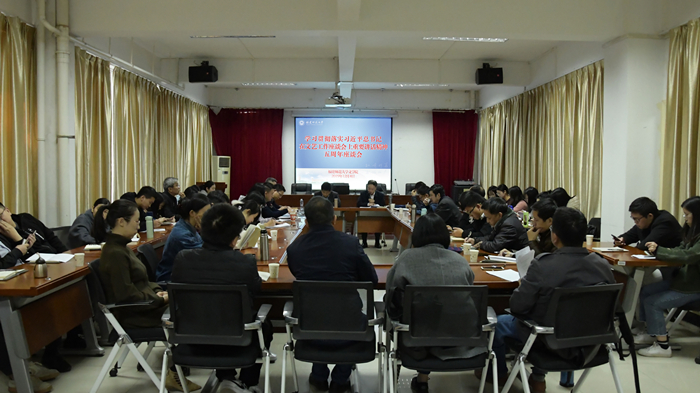 为学习贯彻落实习近平新时代中国特色社会主义思想,在习近平总书记文艺工作座谈会重要讲话发表五周年之际,12月4日,文学院在邵逸夫楼二层学术报告厅召开学习贯彻落实习近平总书记在文艺工作座谈会上重要讲话精神五周年座谈会。省社科院副院长刘小新出席会议并做专题报告,文学院师生代表近50人参加座谈会。会议由文学院党委书记李建华主持。