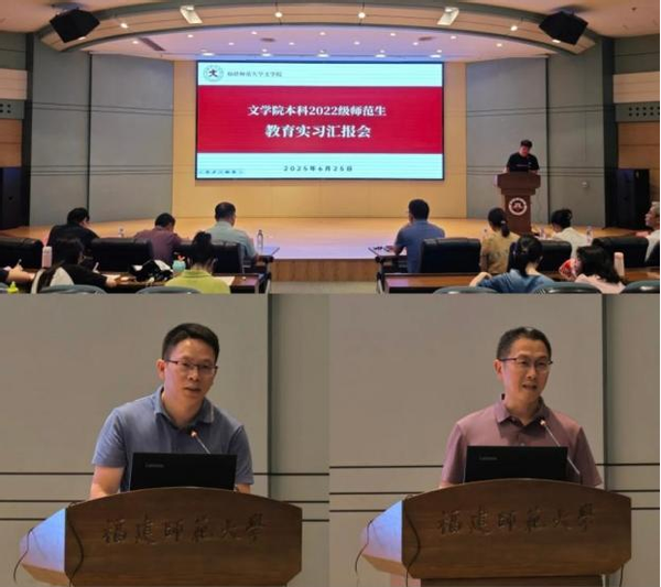 近日,文学院在邵逸夫楼三楼报告厅举行本科师范生实习总结汇报会。学院党委副书记刘锦华、副院长颜桂堤,金山中学葛莉茜老师、金港湾实验学校陈泽安老师,学院教师代表及2022级全体本科师范生参加会议。